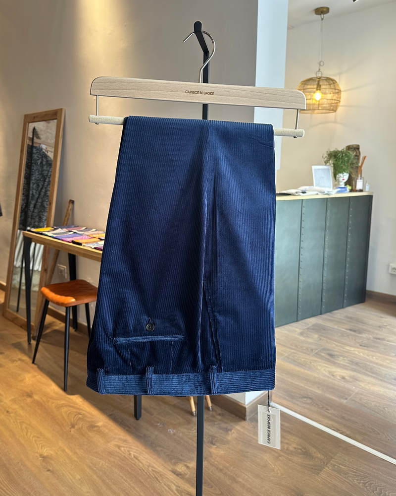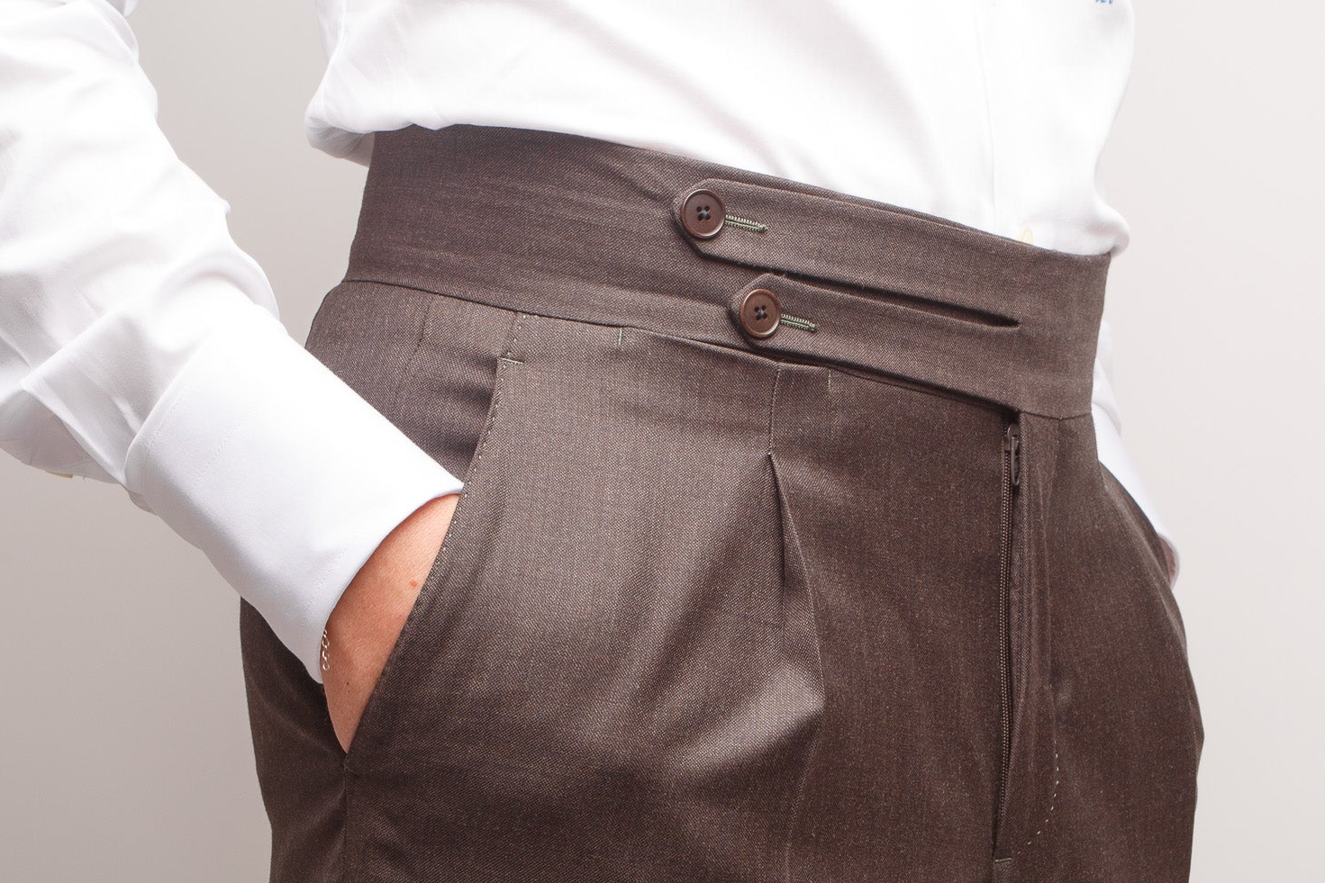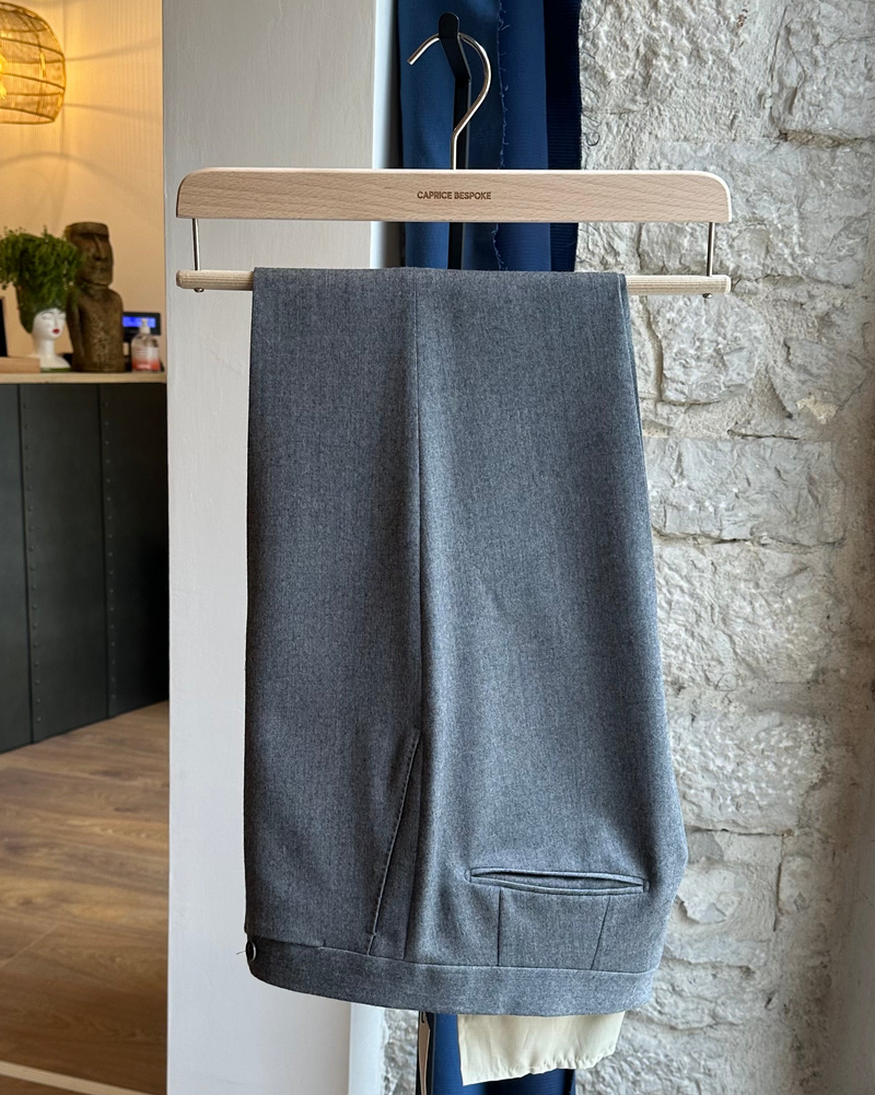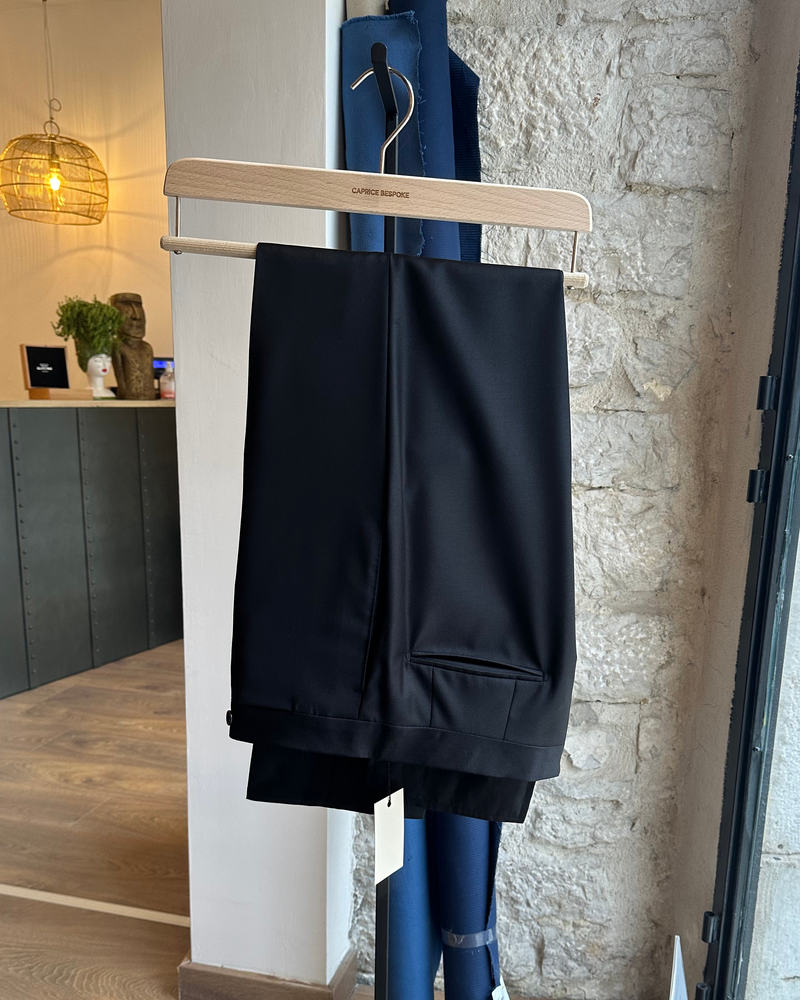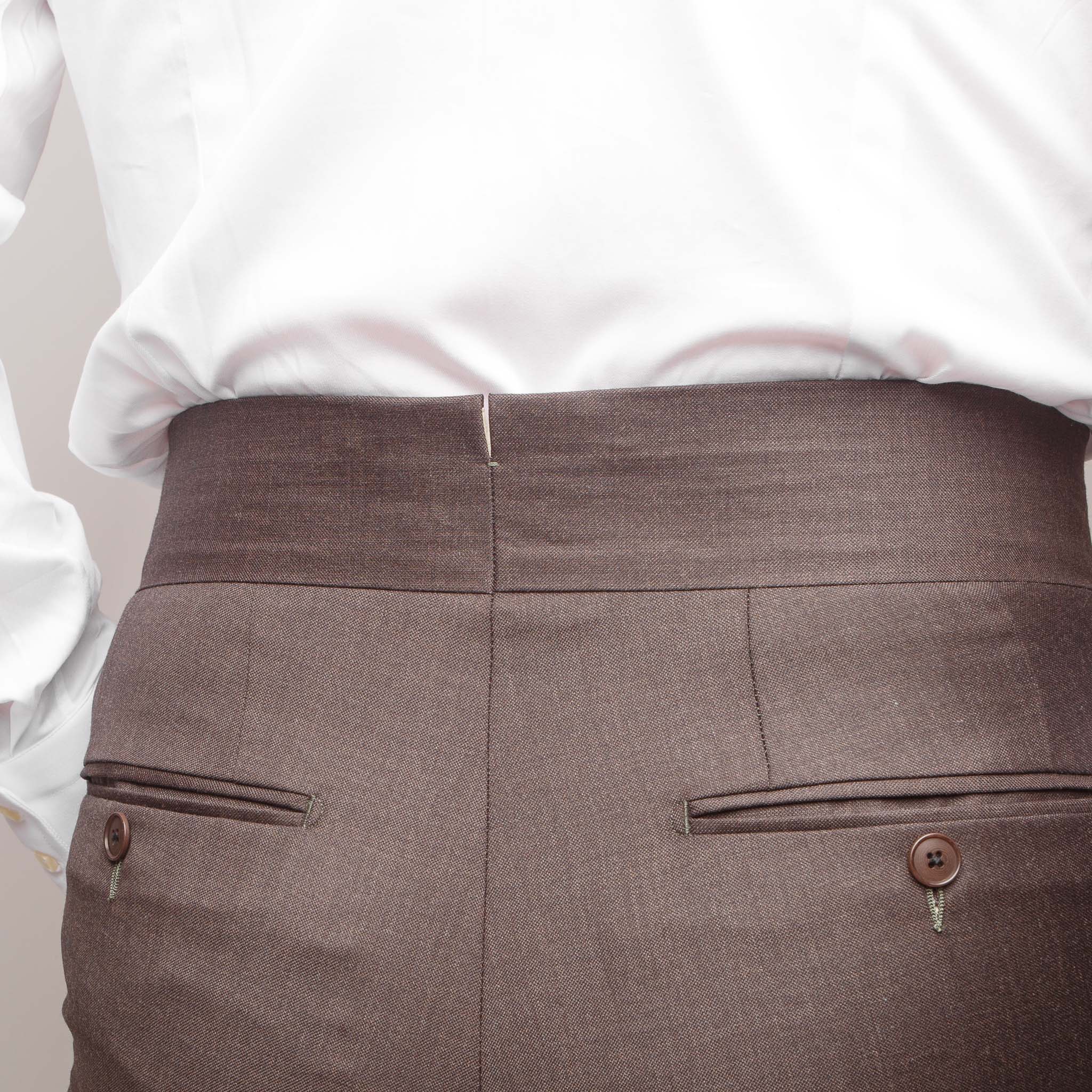 Personalize the rear design with a signature V-notch or adjustable tabs. Combine with your jacket or waistcoat for a cohesive, made-to-measure ensemble.