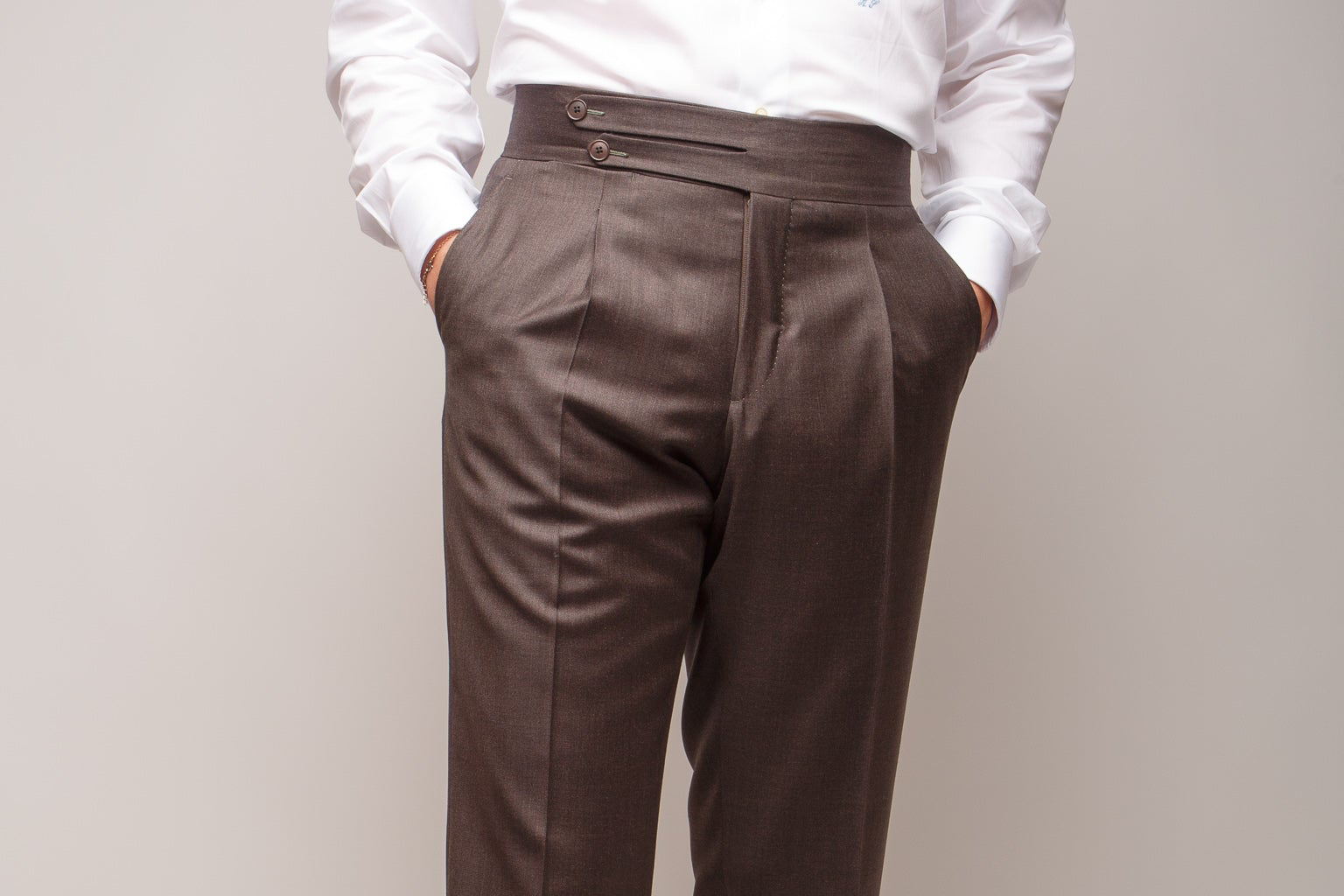 Choose your finish for a clean, secure fit: side adjusters, extended tab closure, or belt loops. Add refined internals like brace buttons or rubber shirt stays to keep your shirt neatly in place.