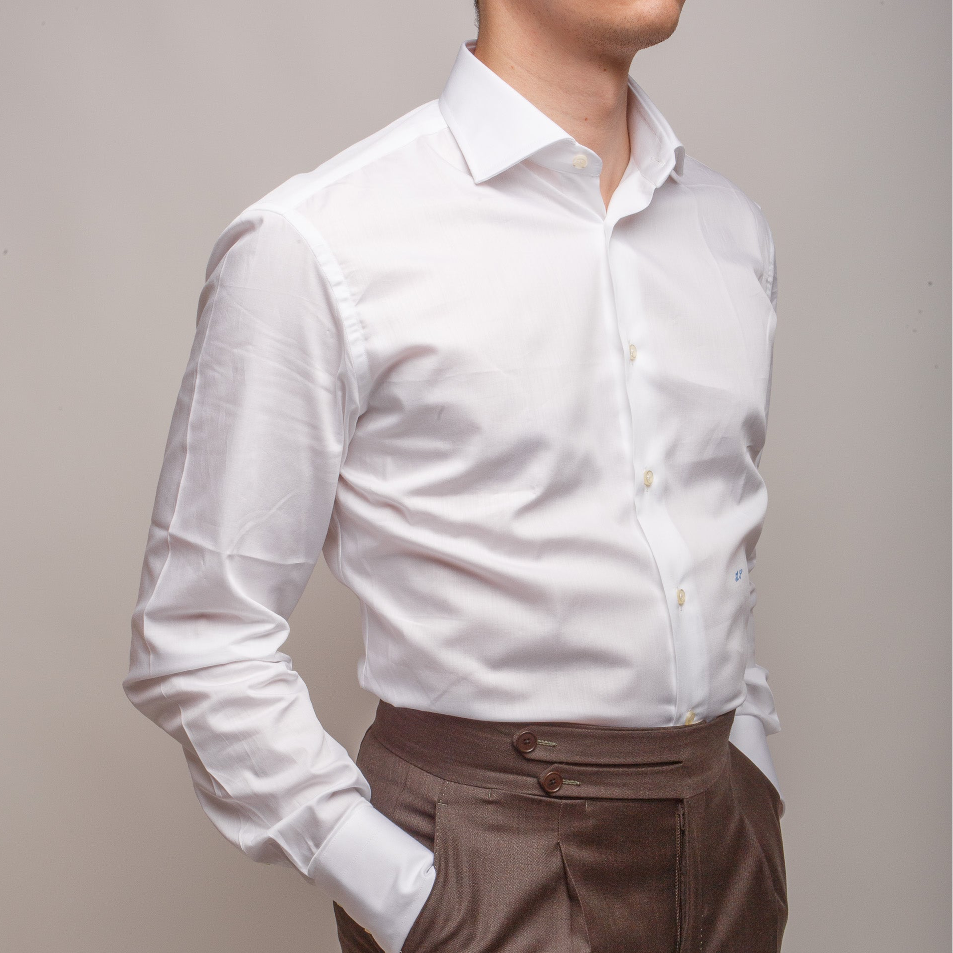Refine your shirt with hand-finished stitching and embroidered initials, discreetly placed to add a timeless, personal touch.